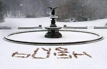 The Byron Bay protest was one of a number of similar nude protests around the world, in a climate of increasing anti-war sentiment. Late yesterday (AEDT), about 30 women scurried into the heart of Central Park in New York City, disrobing amid steady snowfall to display their deep misgivings about war. In shivering temperatures, the American women used their naked bodies to spell out the words, "No Bush". Prime Minister John Howard left Sydney on Saturday on a week-long trip in which he plans to meet with US President George Bush as well as UN, British and Indonesian leaders.